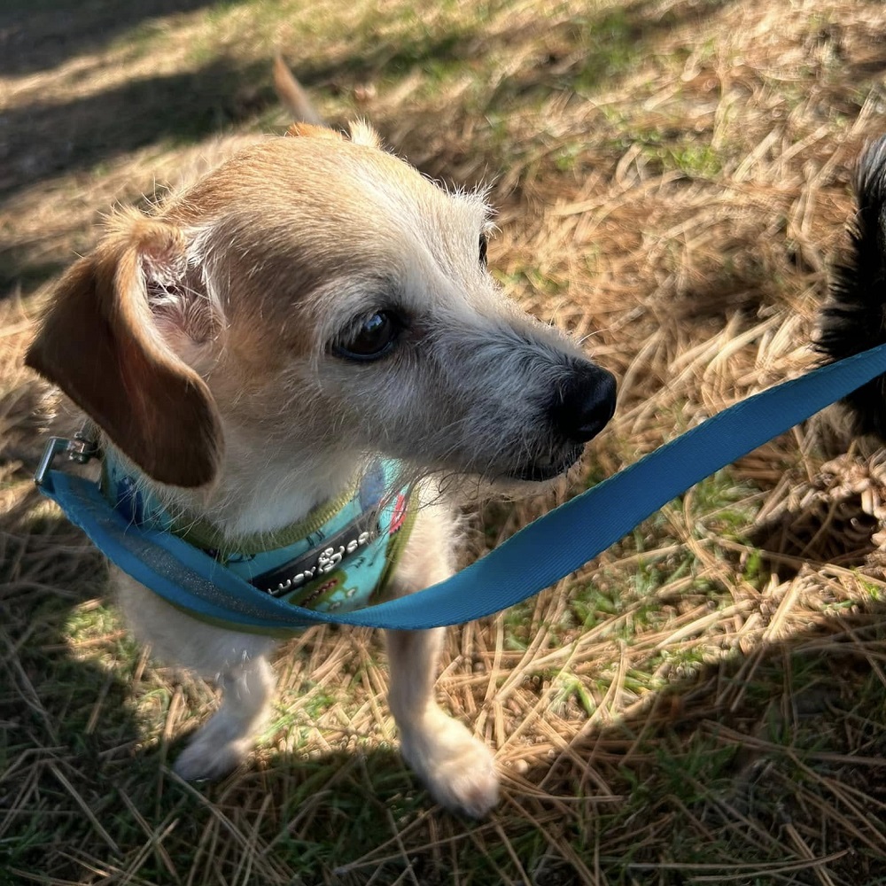 Bo loves to be by his foster mom’s side, whether it’s spending time on the couch, following her around the house, or snuggling up together at bedtime (where he loves to be cozy under the blankets right at her side!). If you’re looking for privacy, keep searching! Bo has several other foster fur siblings and he frequently tries to play with them. Unfortunately, they don’t quite share his enthusiasm or energy and don’t tend to appreciate his gestures. He would likely do well with another dog who enjoys a bit of banter, or even a no-pet but playful family. Although Bo tries to engage with the other dogs in his current home, he also gives possible signs of anxiety and uncertainty around them (lots of lip licking). He is perhaps trying to understand his place within his new circle.