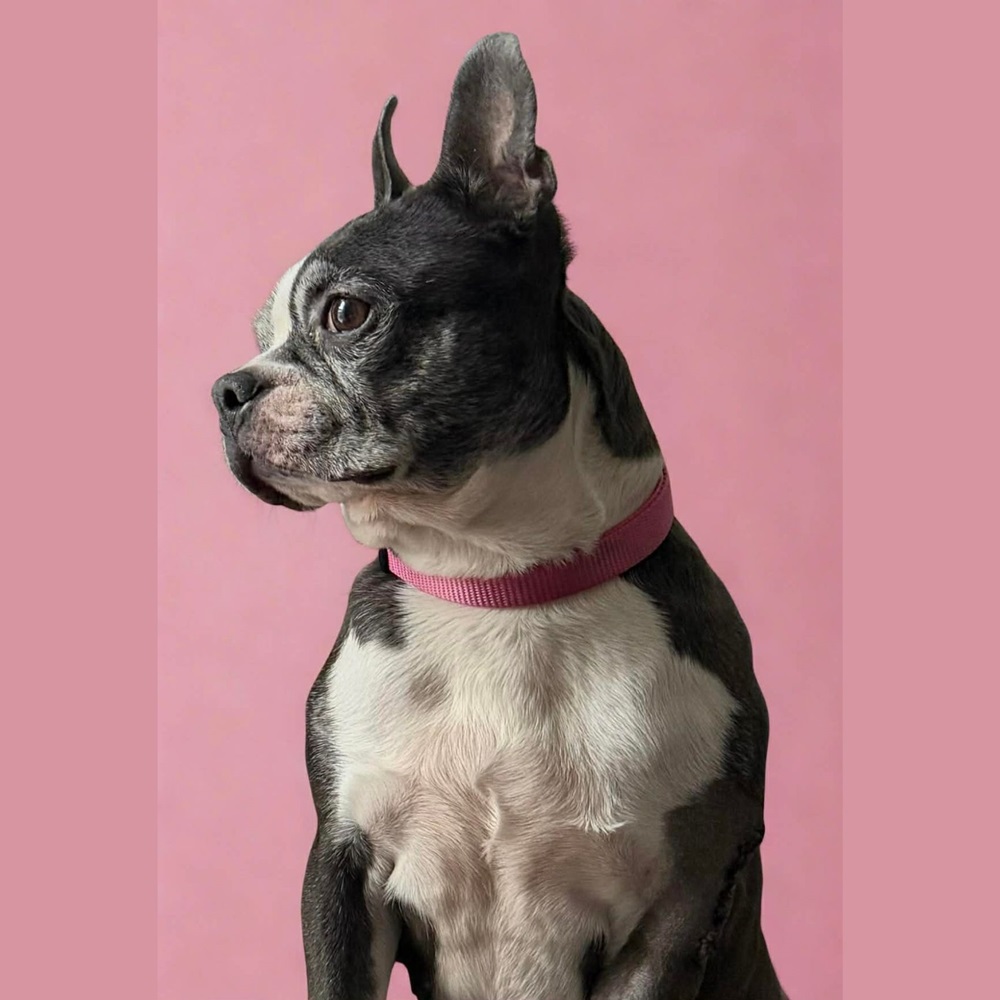 Misty is true to the traits of a Boston and is a bit of a Velcro dog (IYKYK) and her favourite spot will be your lap. She would thrive in a home where someone is home most of the time. She doesn’t love being left alone (who does?) and would rather go along with you for adventures. Just say the word and this girl is looking for the leash and heading to the car.