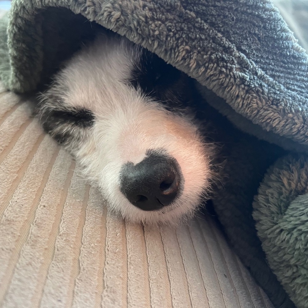 Her favorite place to be is snuggled up under a throw blanket on the couch with you.
