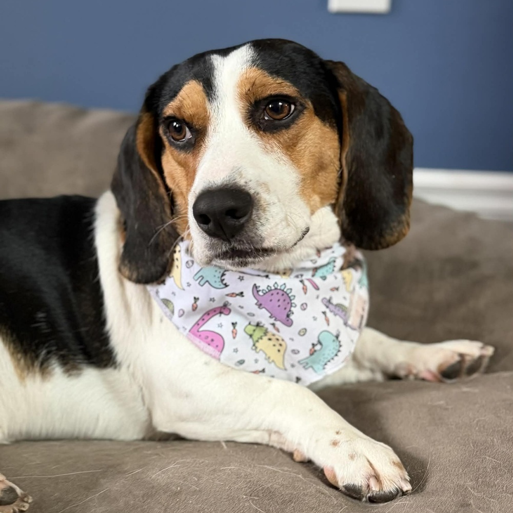 Roy is a sweet, kind and playful Beagle mix who found himself in an unfortunate situation. Roy came into rescue with a broken pelvis due to being hit by a car, he is awaiting FHO surgery on April 9th. Roy has gained the nickname “Franklin” in his foster home as he has to move turtle slow as he recovers.